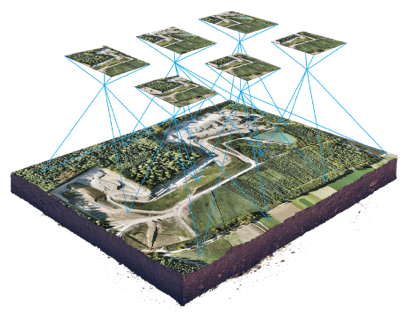 Unter Drohnenvermessung verstehen wir den Einsatz einer Drohne oder eines unbemannten Luftfahrzeugs (UAV), um Luftdaten mit Sensoren, Kameras zu erfassen. Bei einer Drohnenvermessung mit einer RGB-Kamera wird der Boden mehrmals aus verschiedenen Winkeln fotografiert und jedes Bild mit Koordinaten versehen.