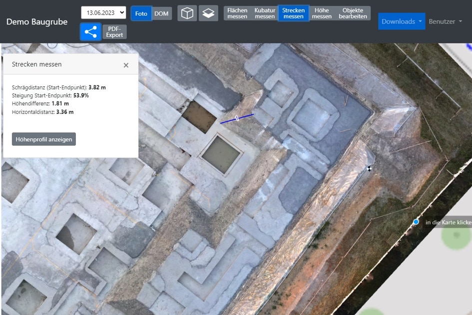 Orthofotos dienen uA. als Bestandssicherung bevor bspw. eine Strassen- und Werkleitungssanierung realisiert wird. Mehrmalige Befliegungen wärend der Bauzeit dokumentieren den Baufortschritt. Der Zustand vor und nach der Sanierung kann ausgewiesen werden. Siehe auch Bauvermessung